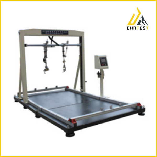 嬰兒拖車往返試驗機電機通過偏心距為51mm的偏心輪,推動有固定支點的腳架,作來回搖動,三腳架后邊連接嬰兒拖車,在固定導軌上做水平往返測試,根據需求設定測試次數,測試次數到達后,看拖車的受損程度。 技術參數:1.轉速:60RPM可調2.旋轉軸半徑:51mm3.計數器:LCD 0~999,999 設定次數到達會自動停機4.使用電源:AC220V 50HZ5.機臺體積:2600×1200×820(L×W×H)mm6.機臺重量:約360kg