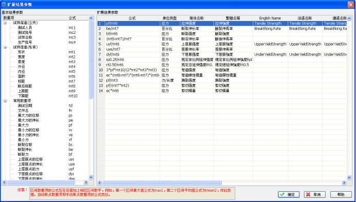 強度、抗拉強度、抗壓強度、任意點定伸長強度、定負荷延伸、彈性模量、延伸率、剝離區間最大值、最小值、平均值