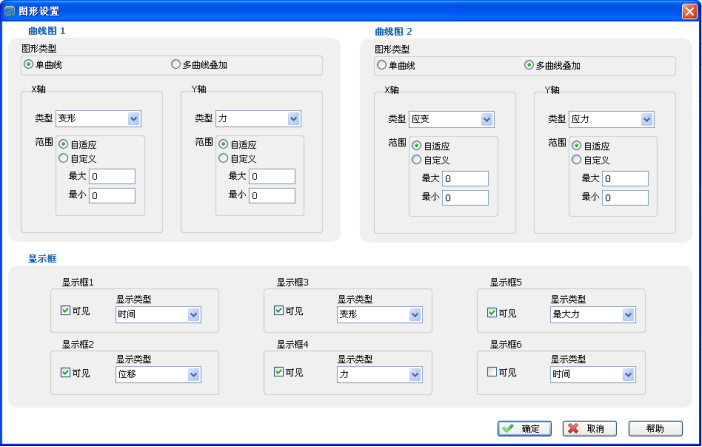 E. 圖形曲線尺度自動化(Auto Scale),可使圖形以較佳尺度顯示。并可于測試中實時圖形動態(tài)切換。具有荷重-位
