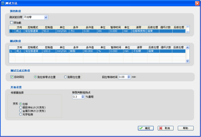 返回功能 | 手動或自動兩種選擇、試驗結束后自動或手動以最高速度返回試驗初始位置 |