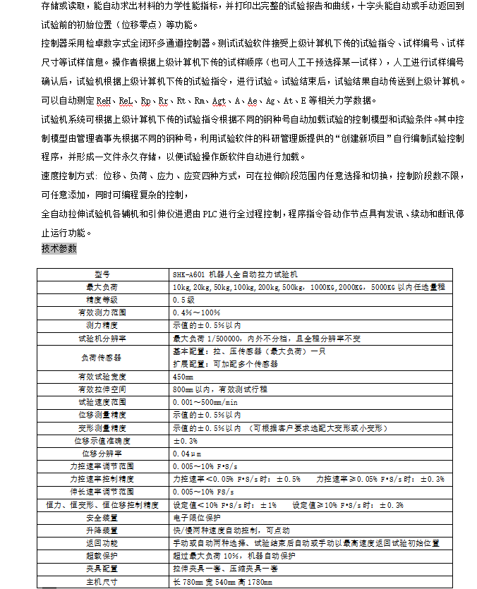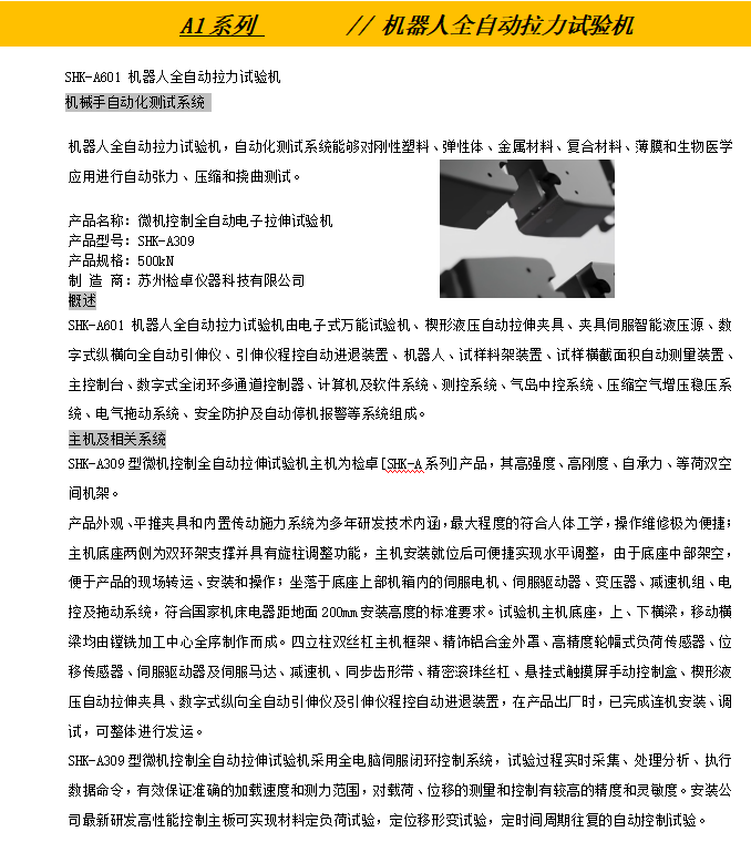 產(chǎn)品名稱:SHK-A601 機器人全自動拉力試驗機