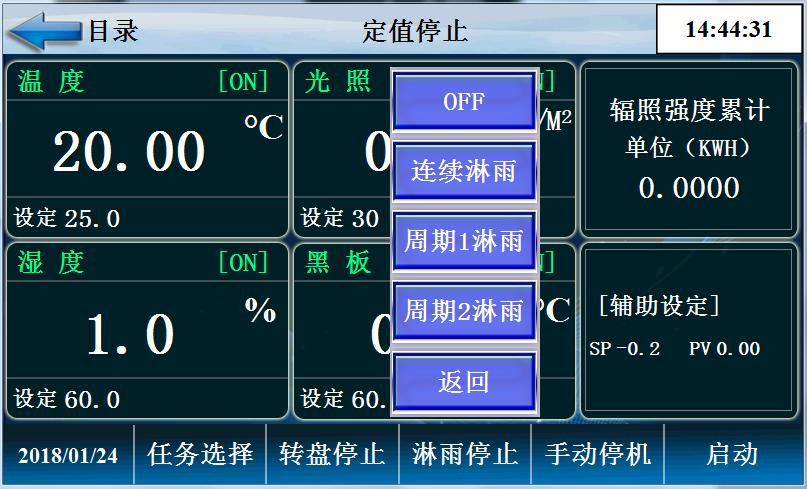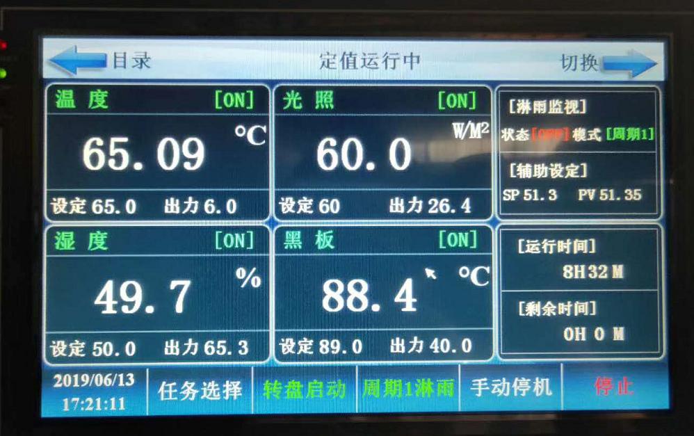 控制界面顯示 | 溫度、濕度、輻照度、等功能均在同一個界面上顯示操作 | ||